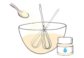 Doser l'argile ou carbonate de calcium, le tensioactif, l'huile végétale de coco, le xylitol et l’acide stéarique et le menthol (si utilisé) dans un bol.
