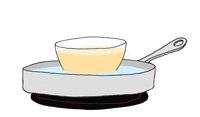 Chauffez l’huile, le beurre et la cire (ou acide stéarique) jusqu’à ce que le mélange soit bien fondu. |