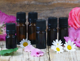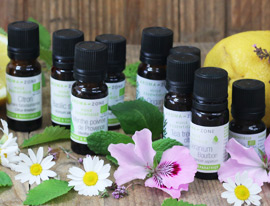 | Les huiles essentielles : obtenues par distillation à la vapeur (ou par pression des péricarpes dans le cas des agrumes), les huiles essentielles sont des concentrés des molécules volatiles de la plante. Ce sont avec les absolues les "reines de la parfumerie".