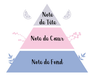 Note de Tête : Ce sont les plus légères et volatiles, les premières que vous sentez lorsque vous découvrez un parfum. Elles restent sur la peau de quelques minutes à quelques heures et donnent la première impression d’un parfum. Note de Coeur : Elles se révèlent lorsque les notes de têtes s’évaporent et constituent le cœur du parfum. On les sent plusieurs heures sur la peau. Elles donnent son identité au parfum. Note de Fond : Lourdes et peu volatiles, elles constituent le « socle » du parfum. Elles servent de fixateur pour les notes de tête et de cœur et peuvent persister sur les vêtements jusqu’à plusieurs jours ! Véritable signature olfactive du parfum, elles lui apportent son sillage et sa tenue. |