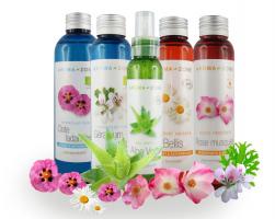 >> Hydrolats : Menthe poivrée, Cyprès de Provence, Hamamélis, Genévrier