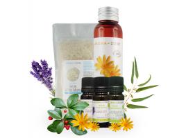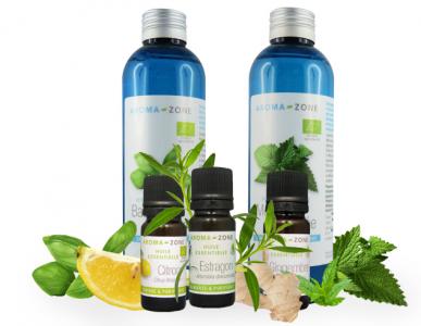 >> Huiles essentielles : Citron (attention aux expositions solaires), Lavande vraie, Tea tree