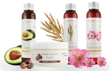 >> Huiles végétales : Jojoba, Macadamia, Noisette, Sésame