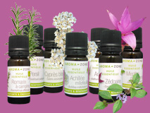 | Achillée millefeuile, Acore calamus, Ail, Ajowan, Aneth, Anis vert, Angélique, Bois de Siam, Cannelle de Ceylan (feuille et écorce), Cannelle de Chine, Carvi, Cèdre de l’Atlas, Cèdre de l’Himalaya, Curcuma, Cyprès, Eucalyptus à cryptone, Eucalyptus globulus, Eucalyptus mentholé, Genévrier, Girofle (clou et feuille sauf accouchement), Katrafay, Lantana, Menthe des champs, Menthe verte, Menthe poivrée, Nard, Noix de muscade, Origan compact et vulgaire, Palmarosa (sauf accouchement), Persil, Romarin à camphre, Romarin à verbénone, Sarriette, Sauge officinale, Tagète, Thym à linalol, Thym à thymol , Thym saturéoïdes, Valériane des Indes, Verge d’or, Zédoaire | ![]() |