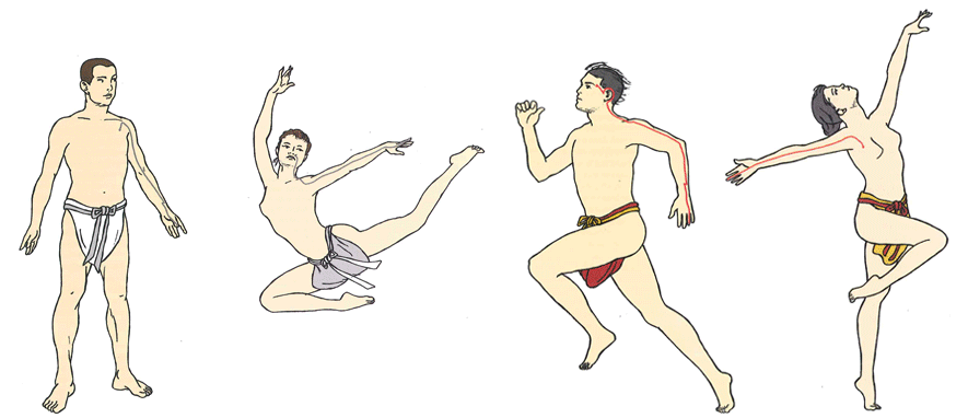 Le méridien du Rein comporte vingt-sept points sur son trajet. Il part de la plante du pied (shéma 1) pour se finir sous la clavicule(shéma 2). |
