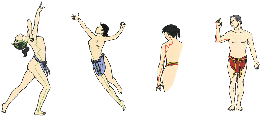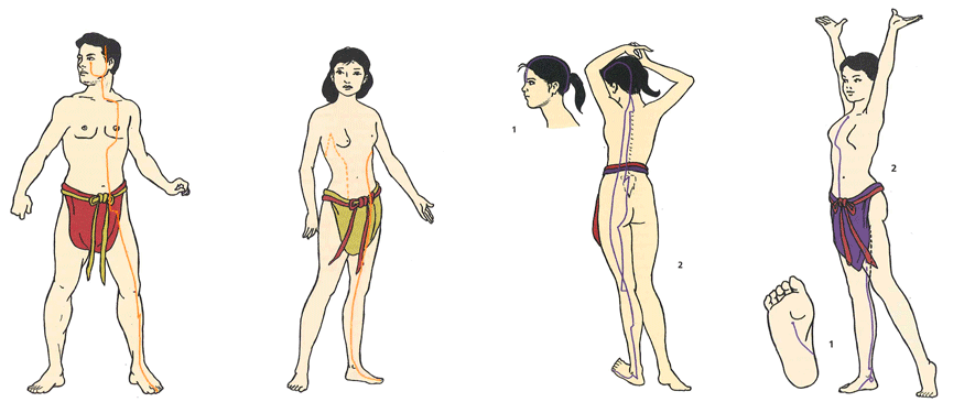 Le méridien de la Rate/Pancréas comporte vingt-et-un points sur son trajet. Il va de l'angle interne du gros orteil jusqu'au côté du buste. |