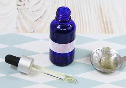 1/ Mettez l'actif bisabolol et l'huile essentielle de Camomille allemande directement dans le flacon qui contient l'Huile de soin de Bourrache. | |