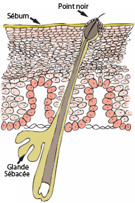 L’acné ne touche pas que les adolescents. Elle résulte bien souvent d’un déséquilibre hormonal ou nerveux entraînant une surproduction de sébum. Les pores de la peau se bouchent. L’excès de sébum peut rester à l’intérieur de l’épiderme : il se forme alors un microkyste. Si l’excès de sébum remonte vers l’extérieur, il formera un comédon (point noir).