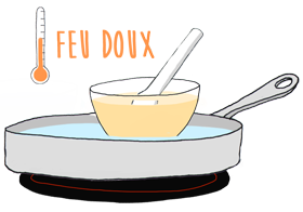 Faire fondre l'ensembleau bain-marie pendant 3 minutes, puis mélanger pour homogénéiser. |