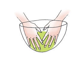 Sortir du feu et malaxer du bout des doigts afin de former une pâte homogène. |