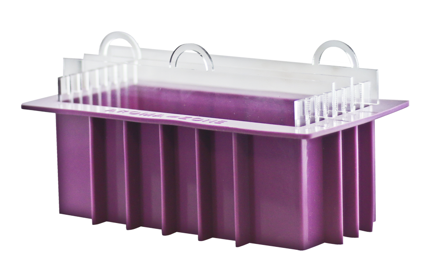 Il est réalisé de préférence dans un moule de forme longue, comme le moule à séparation Aroma-Zone. Si vous utilisez en plus les séparations, vous pourrez réaliser un marbrage « plume secrète ».