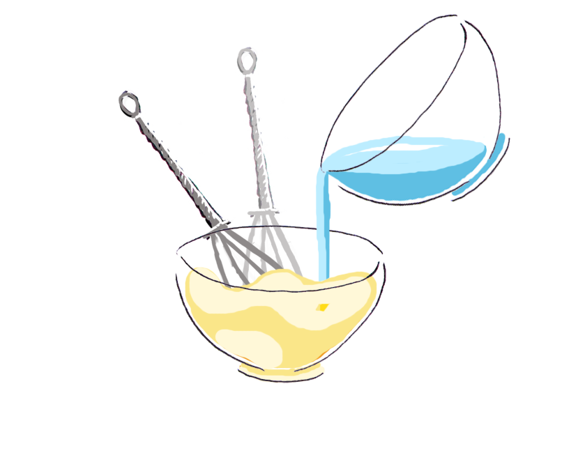 Mélangez soigneusement entre chaque ajout afin de bien homogénéiser la préparation.