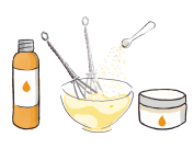- La confection de crèmes ou baumes nécessite parfois des chauffes importantes de certaines phases ou matières premières. Les précautions d'usage doivent être respectées pour éviter brûlures et projections. Il est conseillé de porter gants et lunettes de protection.