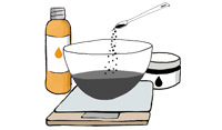 Peser les colorants et les huiles de la phase grasse dans un bol |