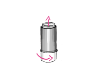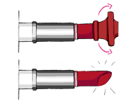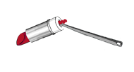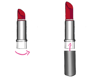 | Tourner le mécanisme pour faire rentrer le bâton de rouge à lèvres à l’intérieur du corps de l’étui, puis remettre le socle et le capot. | Si le bâton de rouge à lèvres coince pour rentrer à l’intérieur du corps de l’étui, c’est que la matière a été coulée au-delà de la petite grille. | ||