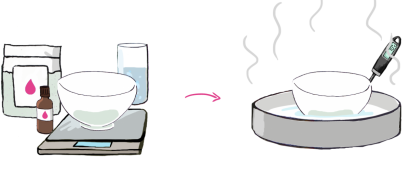 Placez vos deux phases au bain-marie et portez-les à 70°C.Les deux phases doivent être à la même température. |