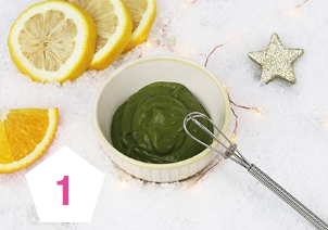 1/ Dans un bol, mettez les poudres d'orange et de neem, ainsi que l'huile essentielle de citron.