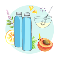 Mélangez tous les ingrédients dans une bouteille. Servir glacé. Personnalisez votre eau gazeuse en y ajoutant des hydrolats ! |