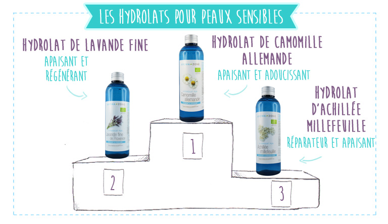 Si les huiles végétales sont les soins incontournables des peaux sèches, les hydrolats sont également intéressants pour les tonifier et les gorger d’eau. Ils s’appliqueront idéalement juste avant un soin nourrissant huileux ou crémeux, qui formera un film protecteur pour maintenir la bonne hydratation cutanée. Le choix se portera sur des hydrolats qui tonifieront tout en douceur ces peaux fines.