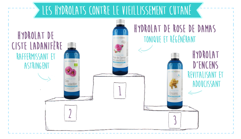 Avec l’âge, la peau s’affine et perd progressivement son tonus et sa fermeté. Les rides d’expression se marquent, et les ridules de déshydratation se creusent. Pour prendre soin des peaux matures et lutter contre les signes du vieillissement cutané, on se tournera vers des hydrolats aux effets toniques et astringents, à appliquer en lotion avant le soin de jour ou de nuit (huile ou crème).
