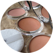 - Blush de teint compact "Sun Brown", "Peach" ou "Rosy"