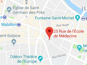 25 rue de l'École de Médecine Paris VIème Métro 4 et 10 - station ODEON Au 1er étage |