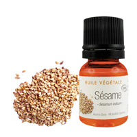 Huile végétale de Sésame BIO 10 ml Très utilisée en cuisine orientale, elle apporte à vos plats une délicieuse saveur de graine de Sésame très légère et agréable qui vous transportera en Orient. Elle s'utilise crue ou en cuisson chauffée jusqu'à 170°C et elle se marie avec tous les légumes crus et cuits. |