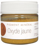 Oxyde minéral Jaune 10 g Le jaune est une couleur primaire : c’est donc un élément indispensable pour composer vos teintes. En association avec les autres oxydes, vous pourrez réaliser de très beaux panels de beiges dorés. |