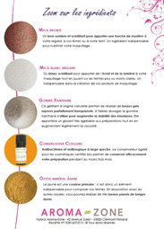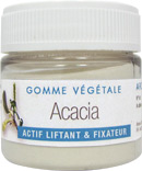 Gomme d'Acacia 50 g Egalement dénommée "gomme arabique", cette gomme dispersible en phase aqueuse est connue pour sa forte capacité à adhérer sur des liquides et solides hydrophobes (qui n'aiment pas l'eau) d'où son utilité comme agent de cohésion dans les émulsions. Cette propriété sera très intéressante pour la stabilisation de formules de mascaras notamment. |