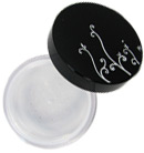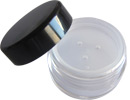 1 Mini-poudrier 7 ml Petit pot en plastique dur transparent avec un tamis et un capot noir discret. |