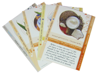 4 fiches recettes et 1 fiche pratique hygiène De très jolies fiches recettes en papier cartonné à collectionner. Ces fiches mettent en images le mode opératoire et détaillent les propriétés des ingrédients. |
