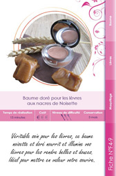 Baume doré pour les lèvres aux nacres de Noisettes 5 ml Véritable soin pour les lèvres, ce baume noisette et doré nourrit et illumine vos lèvres pour les rendre plus belles et douces. Idéal pour mettre en valeur votre sourire. |