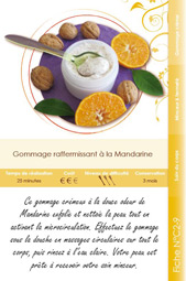 Gommage raffermissant à la Mandarine 100 ml Ce gommage crémeux à la douce odeur de Mandarine exfolie et nettoie la peau tout en activant la microcirculation. Effectuez le gommage sous la douche en massages circulaires sur tout le corps, puis rincez à l’eau claire. Votre peau est prête à recevoir votre soin minceur. |