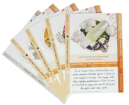 4 fiches recettes et 1 fiche pratique hygiène De très jolies fiches recettes en papier cartonné à collectionner. Ces fiches mettent en images le mode opératoire et détaillent les propriétés des ingrédients. |
