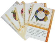 4 fiches recettes et 1 fiche pratique hygiène De très jolies fiches recettes en papier cartonné à collectionner. Ces fiches mettent en images le mode opératoire et détaillent les propriétés des ingrédients. |