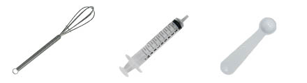 1 mini-fouet en inox 1 pipette graduée 10 ml 1 cuillère de dosage 0.5 ml |