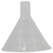 - Insérez la tige de l'entonnoir dans l'ouverture du flacon et procédez au transfert de la matière.