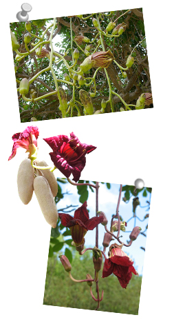 Kigelia africana est un arbre africain de 10 à 15 m de hauteur originaire du Sénégal mais qui pousse plus largement en Afrique : Ouest du Kenya, Afrique du Sud, Tanzanie... Il produit des fruits très durs de taille imposante qui lui vaut le surnom amusant d"Arbre à saucisse".