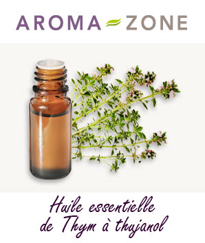- HE Thym CT thujanol (possibilité de remplacement par HE Marjolaine à thujanol) : 3 gouttes