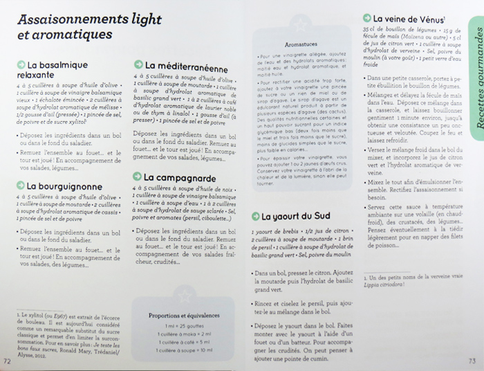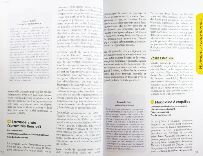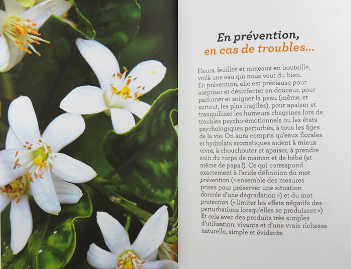 Un livre très pratique de 124 pages, clair et bien construit, pour découvrir les eaux florales et leur utilisation, mais aussi des recettes douce et fraîches pour la cuisine, les boissons, la santé et le bien-être. Un index très utile permet de retrouver facilement l'eau florale correspondant à chaque problématique.