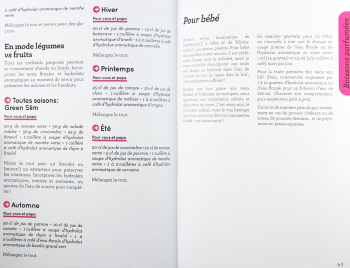 Des recettes de boissons parfumées :Idéales pour la période de la grossesse, pour la jeune maman, mais aussi pour le jeune papa, elles peuvent être utilisées pour le plaisir ou même pour guérir les petits maux quotidiens.