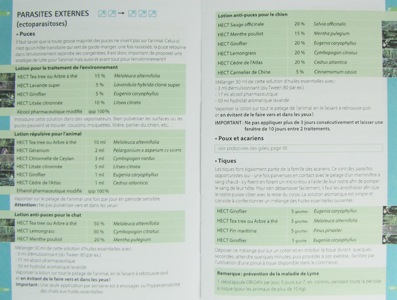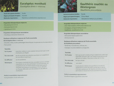 Enfin, une dernière partie est consacrée à la présentation détaillée de chacune des 22 huiles essentielles et 6 huiles végétales support conseillées chez l’animal, en s'appuyant sur des fiches techniques complètes.