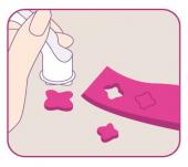 | 1. Insérez le motif choisi sur le manche en le pivotant pour le bloquer contre la butée interne. | 2. Pressez avec le manche sur le support à décorer puis retirez le manche. | 3. Adaptez la force de pression si vous souhaitez un motif plus ou moins marqué, voire une découpe complète de motif. |