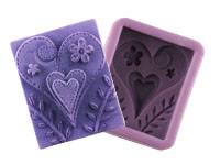 Matériel de fabrication des savonsMoule en silicone à usage cosmétique et alimentaire comportant 6 cavités en forme de cœurs. Longueur 6.5 cm x largeur 7.5 cm x H 3.5...