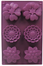 Matériel de fabrication des savonsMoule en silicone à usage cosmétique et alimentaire comportant 12 cavités illustrant des fleurs de formes différentes. Diamètre 2.2...