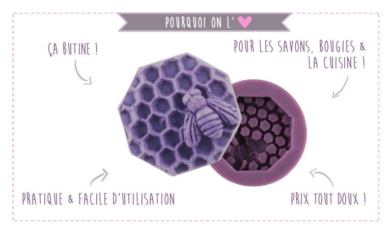 'Ce moule en silicone en forme de quartier de ruche sur lequel est posée une abeille fera de vos savons de vraies gourmandises à butiner.