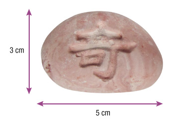Dimensions : épaisseur du galet 1 cm - longueur du galet 5 cm - largeur du galet 3 cm