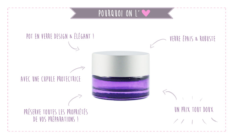 Ce petit pot en verre violet vous permet de conditionner vos préparations cosmétiques maison de petite quantité dans un packaging élégant et inaltérable préservant la préparation tout en laissant voir sa couleur. Très qualitatif et pratique, il sera idéal pour stocker vos baumes, crèmes précieuses pour le contour des lèvres et des yeux, vos parfums solides ou même des petits échantillons de vos réalisations pour faire tester à vos proches ! Parfaitement étanche grâce à sa cupule, il est idéal pour préserver vos préparations à base d'huiles essentielles.
