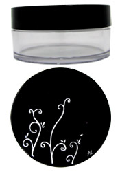 Contenant maquillageElégant poudrier transparent de contenance 40 ml avec un capot noir brillant muni d'un tamis en plastique et d’un emplacement prévu...