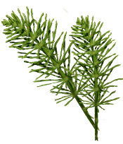 La Prêle des Champs est une plante primitive que l'on rencontre dans tout l'hémisphère nord dans des milieux tempérés très diversifiés, souvent au bord des routes. Elle appartient au même embranchement que les fougères, ne fleurit pas et ne produit pas de graines. Elle est également appelée "queue de cheval", "queue de rat" ou "herbe à récurer", en raison de l'aspect filiforme de sa tige, qui peut être fertile ou stérile. Elle était utilisée par les Grecs anciens pour arrêter les saignements lors de blessures cutanées et consommée en salade par les Romains pour ses vertus toniques. Autrefois, elle était aussi employée en ébénisterie pour polir le bois, mais aussi pour récurer des récipients et nettoyer la vaisselle.